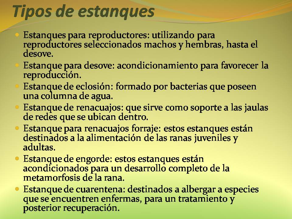 ETAPAS Y CARACTERISTICAS DE PRODUCCION DE RANAS